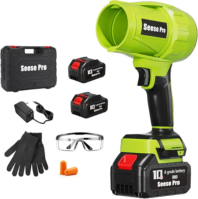 Seese Portable Dust Cleaner Blower (cordless, 4.0Ah battery & charger, 2-battery set with case, 8 lbs). Lawn & patio cleaning. 1-year warranty.